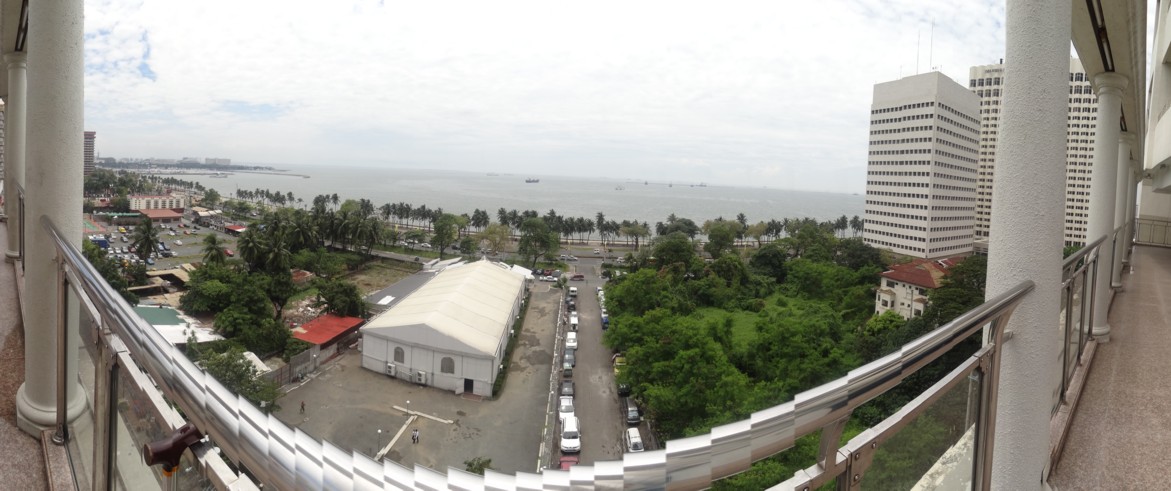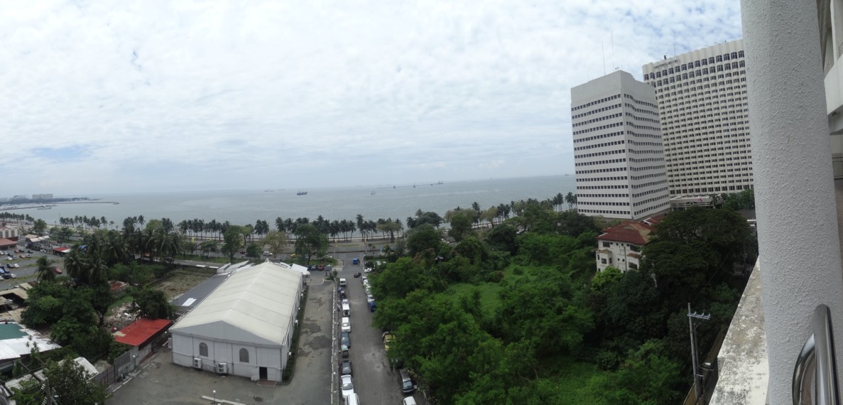 Ich mochte zwar das problemlose Leben in den besseren Hotels sehr, wir haben dann aber ein huebsches kleines Appartement hoch im Alpha Grandview Tower gefunden (Google maps/earth findet das bereits nach Eingabe von "Alpha G" in die Suche, den gibt's nur einmal auf der Welt!). In der Mitte der Bucht, in der Mitte Manila's, Superlage, nur 300m von der amerikanischen Botschaft entfernt. Grossartiger Blick ueber die Stadt und die Bucht von Manila, wie der Name sagt! Alpha Grandview