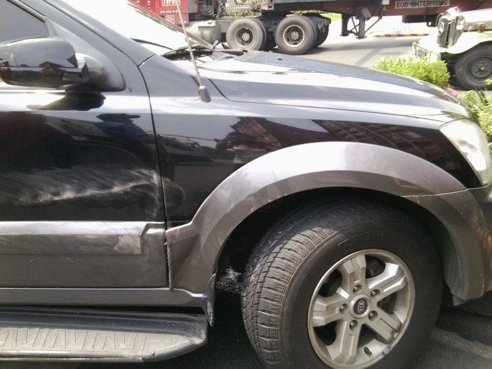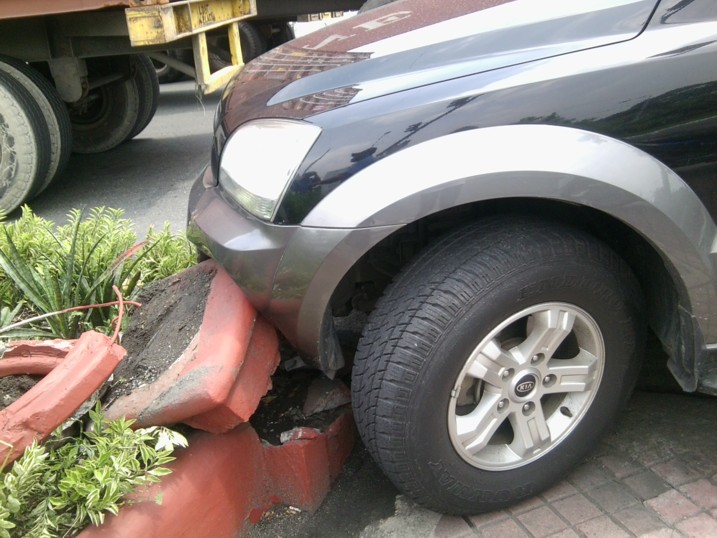 Transportmittel (insbesondere Autos und Motorraeder, aber wohl auch Flugzeuge und ... hmmm.. Schiffe) haben bei mir eher kurzfristigere Verfallsdaten. Im Falle des Sorento hat's aber immerhin zwei Wochen nach Ankunft in Manila gebraucht, bis er hin war. Ein Seecontainer hat uns einfach ueberrollt. Er wollte ins Auto hinein wo Grace sass, da ich die Sache aber geraume Zeit vorher kommen sah und bereits unentwegt aber erfolglos hupte - ich konnte weder vor noch zurueck: ich war EINGEKEILT! -, konnte ich das Schlimmste verhindern indem ich nach links zog und eine Verkehrsinsel erlegte, die ein Blumentopf vergeblich vor dem Schlimmsten zu bewahren suchte.