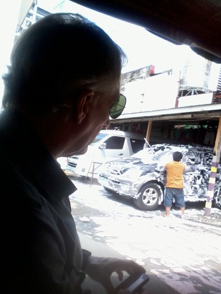 Carwash is done by hand, in the Phils, no MrWash. Takes half an hour, two guys, costs one or two $. Result is good.
