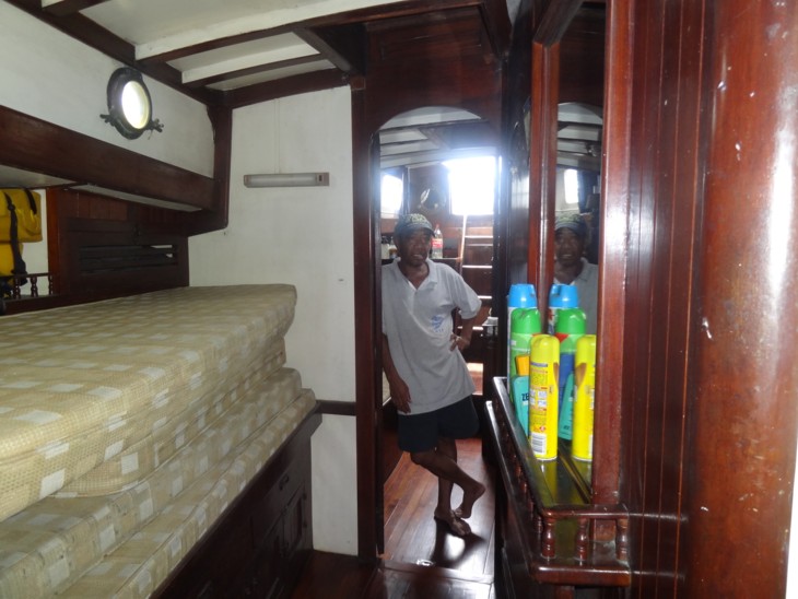 Wir nahmen dann die Super-Ferry - na ja: die gaben uns fuer das teuerste Ticket den "stateroom", die "Praesidentensuite" fuer die 24-stuendige Ueberfahrt nach Bacolod auf Negros. Sagen wir's so: der Praesident haette da nicht einmal seinen Hund einquartiert. Man muss das relativ sehen: relativ zu den Quartieren der anderen Passagiere war das in der Tat die "Praesidentensuite". Wir mieteten einen Mitsubishi Montero SUV und umrundeten damit die Insel: keine Weltumrundung, aber wenigstens etwas. In Tambobo Bay wurden wir erneut auf die schlechte Holzqualitaet hingewiesen und vor einem Eigenbau nachhaltig gewarnt. In 2003 traf ich hier Michael, der seinen Katamaran selbst baute. Er hatte das Schiff unter dramatischen Umstaenden kurz nach Stapellauf infolge von Holzfaeule verloren wie er sagte. Erzaehle ich 'mal an anderer Stelle. Dieses Risiko ist nicht vertretbar.