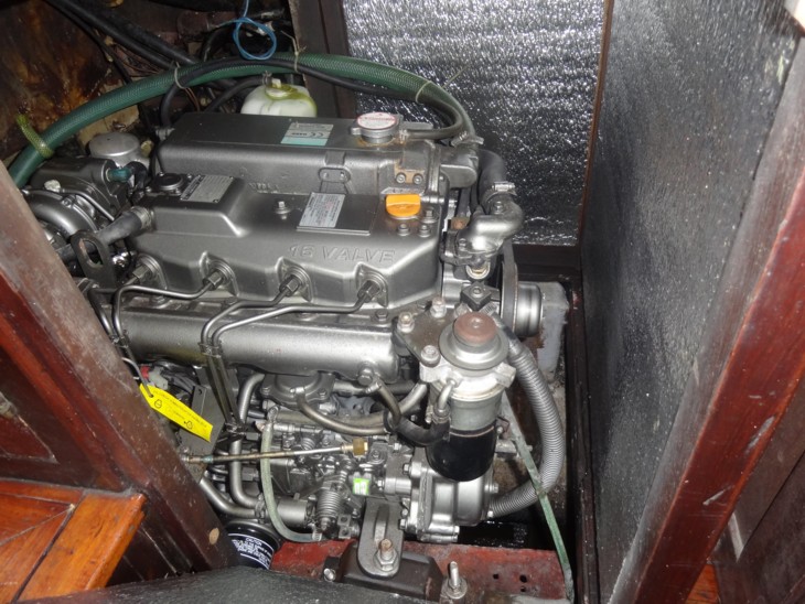 Sakura's highlight is the BRANDNEW and pretty expensive Yanmar-turbo-Diesel (one of if not THE best). I do not really understand, though, why they add a turbo to these: You usually need a turbo to reach high power output and quicker acceleration to higher revs with a diesel. In a petrol-engine the fuel-consumption rises significantly. I am not so sure if this is the case in Diesels, also. The use of a ship-engine is LOW constant revs about 2000-2500 rpm - as in a Lycoming- or Continental-aviation-engine - , accelerating the engine quickly to higher revs is without any importance. They do it because it keeps the engine smaller for a given no. of horsepower, maybe? As we can see the space in the engine-room is very limited.