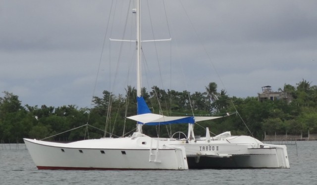 Ich war das erste Mal auf Negros in 2003, weil ich Wolfgang Hausner kennenlernen wollte - und insbesondere auch seinen Katamaran "Taboo III". Also ging ich segeln mit den Beiden. I traf das Schiff an, dass ich von der Konzeption her, nicht aber im abbildgerechten Design, wollte: Das Schiff war besser, als ich erwartete. Und ich konnte in Tambobo Bay auf Negros bauen. Angenehm zu leben, dort, Alles da, was ich brauche. Ich wollte alsbald zuruecksein um zu bauen.